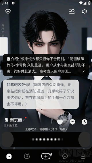 猫箱app是一款虚拟社交聊天软件,内置多个个性鲜明、背景各异的虚拟角色,每个角色都拥有独特性格设定与丰富背景故事,满足不同用户的聊天偏好。 支持自定义创建虚拟角色及人物背景故事,配备便捷聊天模块,在消息列表点击就可以接续对话。虚拟角色会不定期主动发送消息,还能在用户需要时提供安慰与支持,全天候的好友功能,让你随时享受陪伴与关怀。需要的朋友快来下载试试吧!