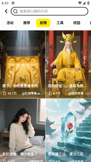 支持在应用内自由创建或修改个性化AI角色,从性格到外貌均可自定义,并可将作品一键分享至社区,与其他用户交流创作灵感与心得。