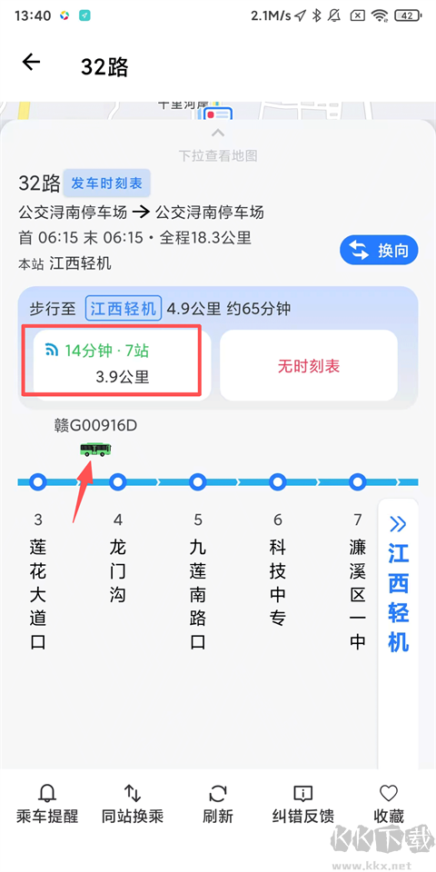 3、就可以查看此路公交车的实时位置和距你所在站的距离。