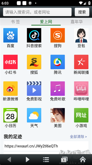 1、打开软件可以看到软件内精选了适合安卓手机浏览的中文网站