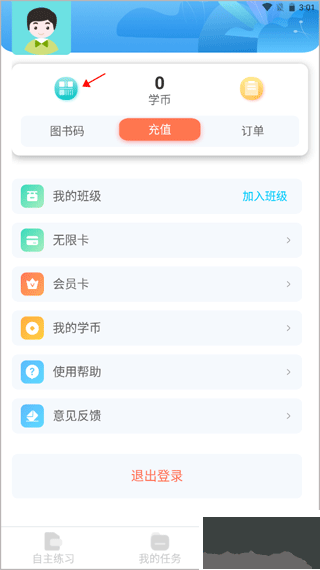 1、注册登录软件账号之后,切换到【我的】功能页面,点击左边的“图书码”图标。