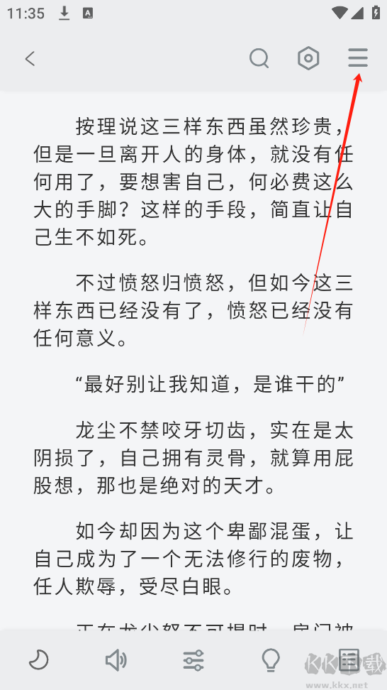 4、进入阅读界面之后,点击右上角三条杠