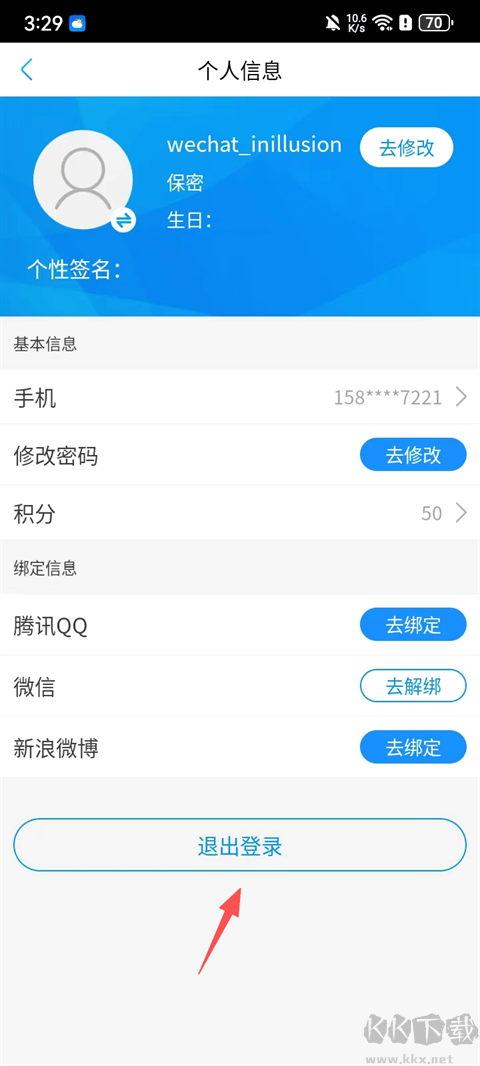 2、点击下方的退出登录;