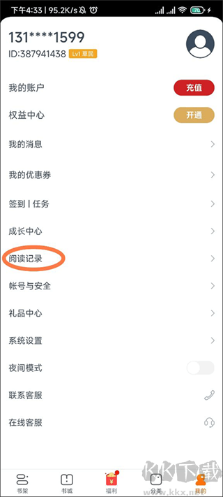 1、打开点众小说App,点击右下角“我的”,进入个人中心,再点选“系统设置”。