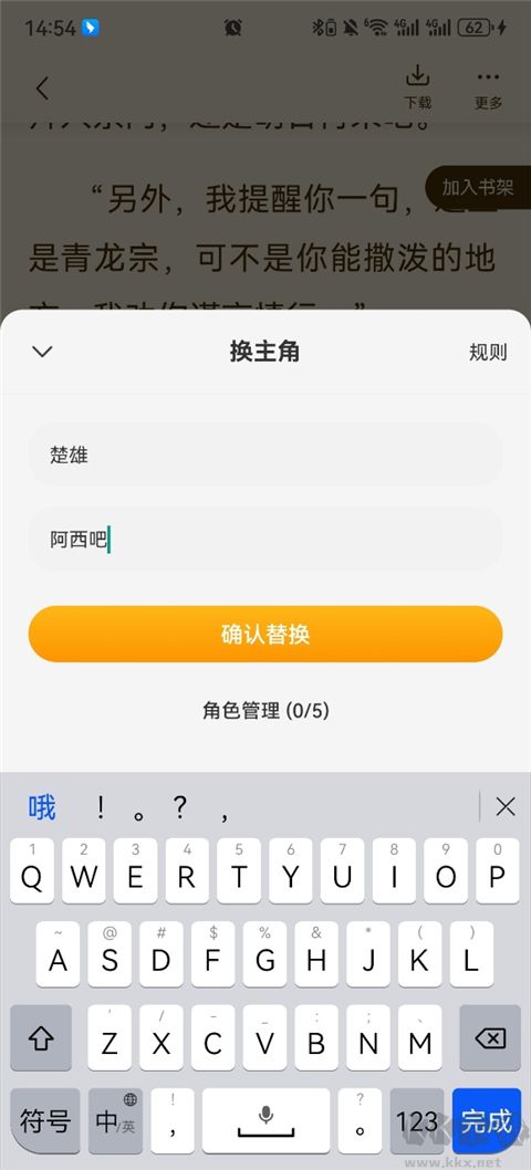 爱看书免费小说App怎么替换小说主角名字