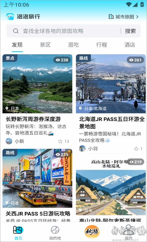 1、本站下载打开泡泡旅行,首页有许多热门景点推荐