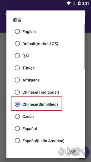1、打开软件,选择Chinese中文简体语言进入;