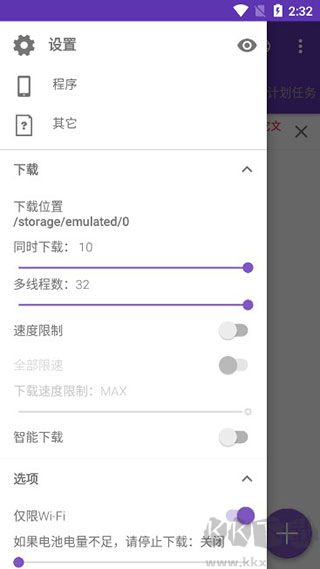 5、回到首界面,点击左上角的"三"按钮打开侧边栏,可设置最大下载数;