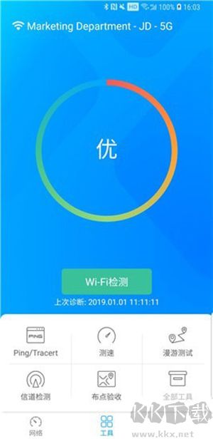 网络体检助您识别网络异常,并涵盖测速;漫游测试;Ping;Tracert;信道分析等多样化的网络辅助工具。