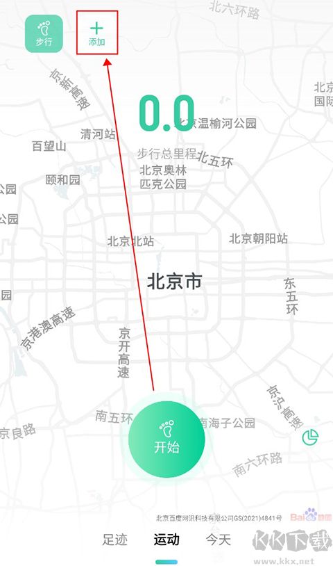 3、随后在页面顶部选定本次要记录的足迹种类,点击开始便可启动记录。