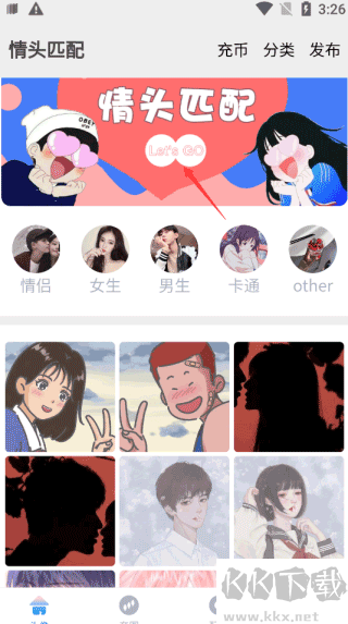 2、专为情侣打造的头像配对工具,内置大量成对的情侣头像资源。