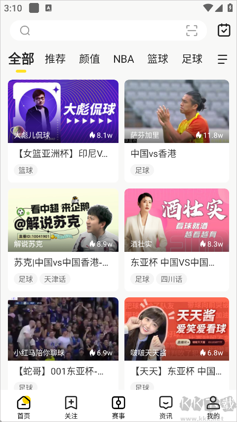 2、汇聚数百位个性鲜明的体育主播,带来实时赛事解说,既有深度战术分析,也有激情生动的现场讲解;