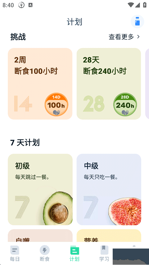 5、在计划页还有许多系统内置的断食挑战,有实力就来挑战一下吧;