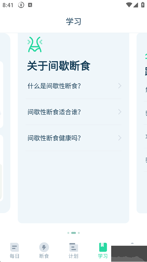 6、最后用户还可以在学习页中了解断食相关的知识,帮您科学减肥!