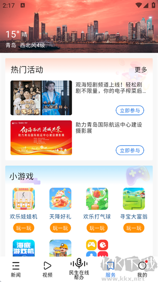 观海新闻app是一款权威新闻资讯与智慧服务软件,拥有新闻传播、政务服务、民生互动于一体,立足青岛、辐射全国。采用优质原创内容与智能传播技术,提供权威、专业、有温度的资讯服务。还接入智慧城市服务系统,内置政务办理、民意反馈、生活服务等功能,兼具信息传播和城市服务的综合性主流新闻。需要的朋友快来下载试试吧!