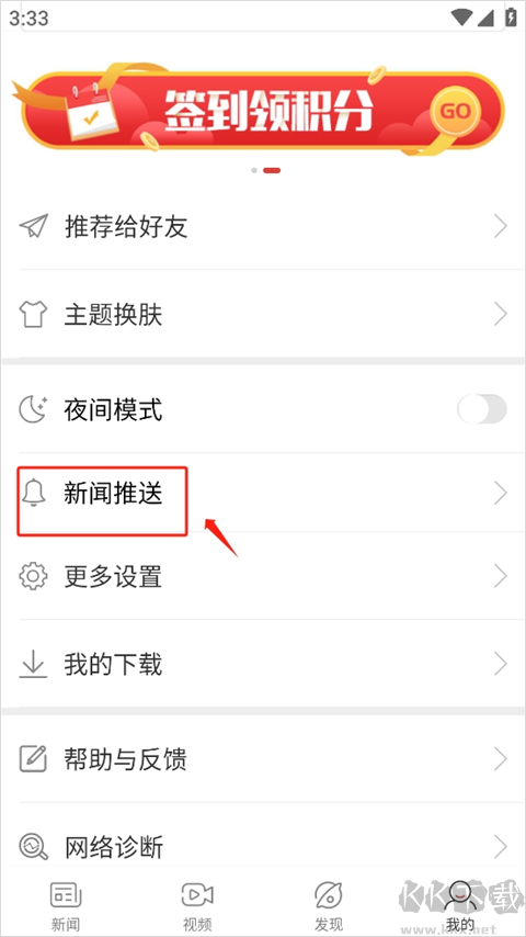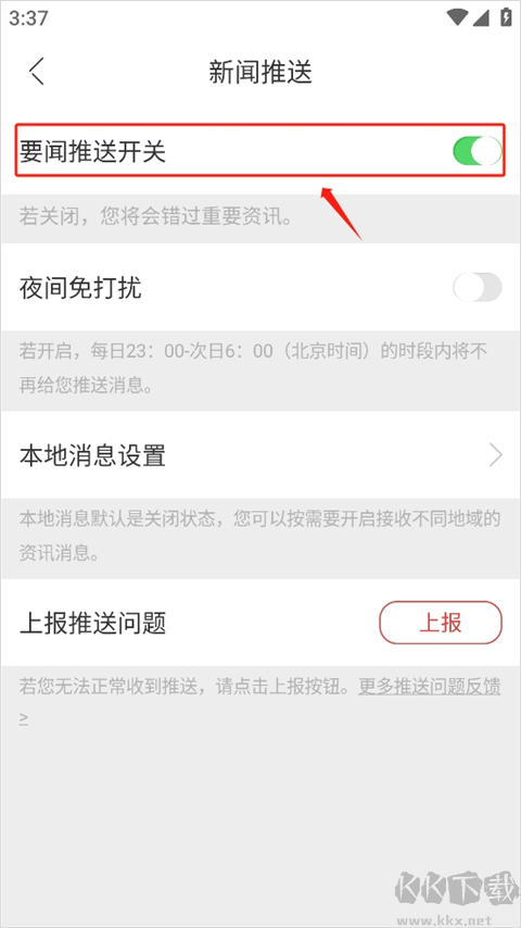 2、在该页面就可以点击开启/关闭要闻推送开关。(如已开启系统推送开关,则跳过此步骤。)