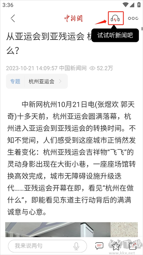 2、或点击进入文章-点击标题上方“小耳机”,就可以收听语音播报新闻了。