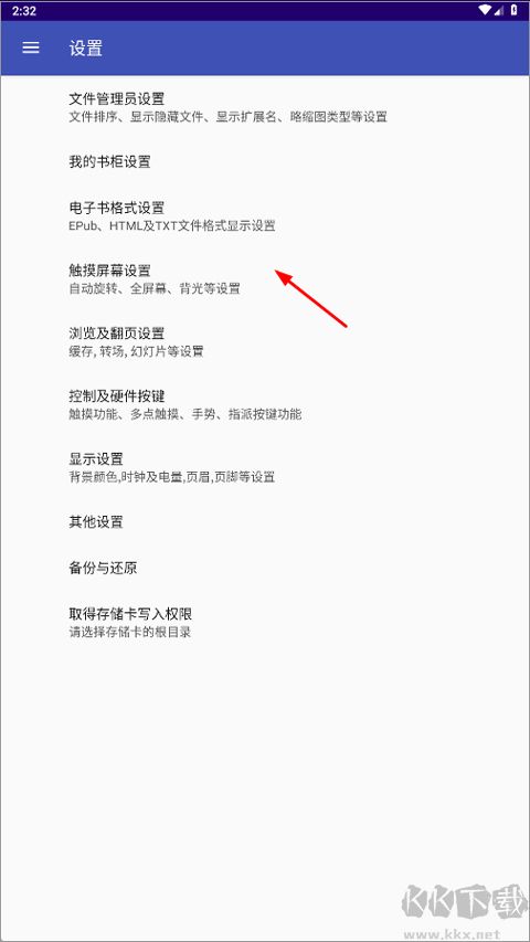 3、然后点击触摸屏幕设置;