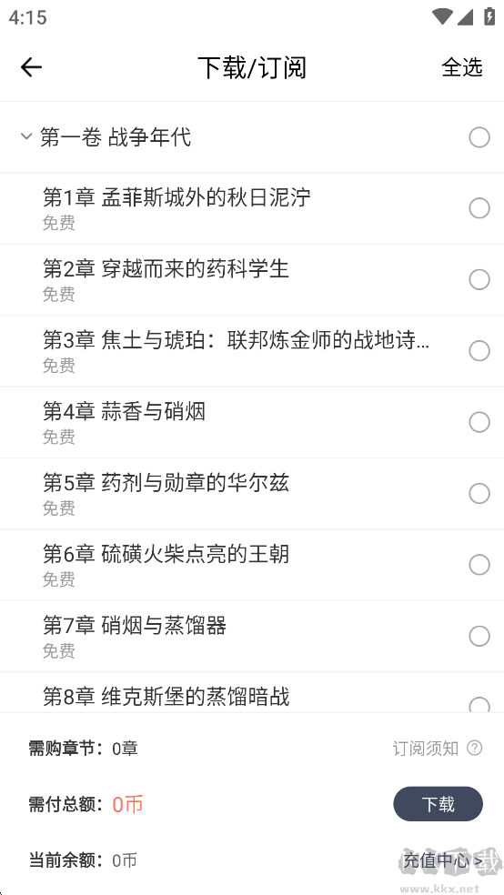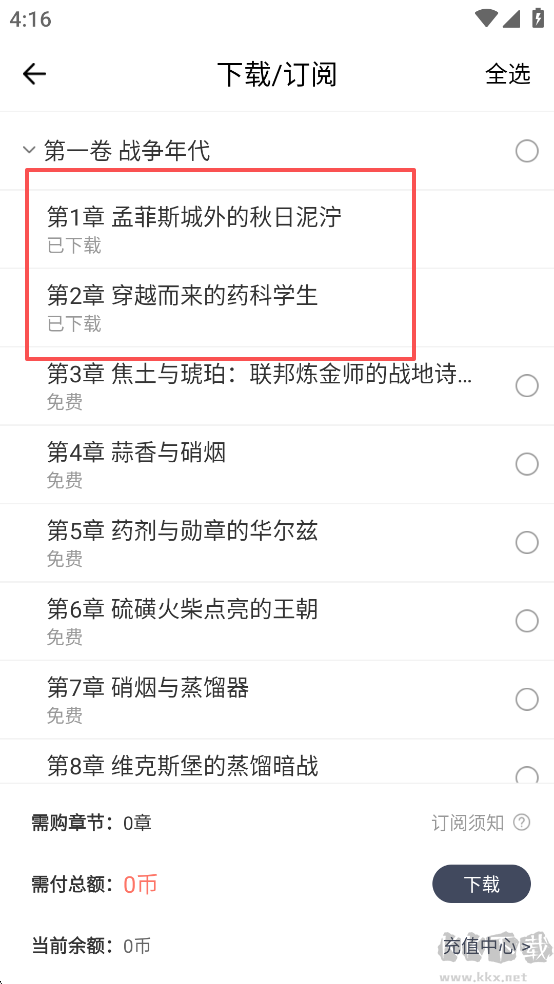 3、选择需要下载的章节和目录