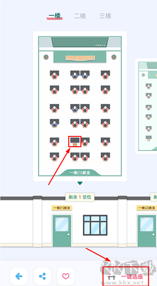 2、进入后,选择自习室入座,或者也可选择【一键选座】;