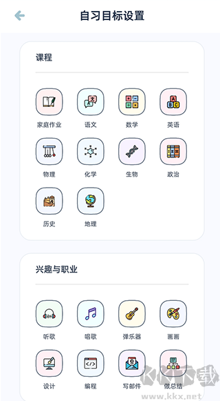 自由选择 — 可按个人喜好挑选不同风格的虚拟教室进行自习;