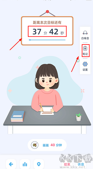 5、之后就会进入学习倒计时,学习完成后,还可对这次的学习进行总结。