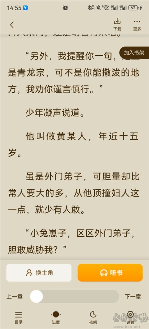 1、找到自己感兴趣的小说,点击屏幕的弹出设置,点击换主角