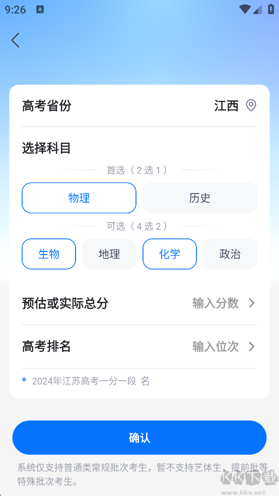 填写省份、选科、分数