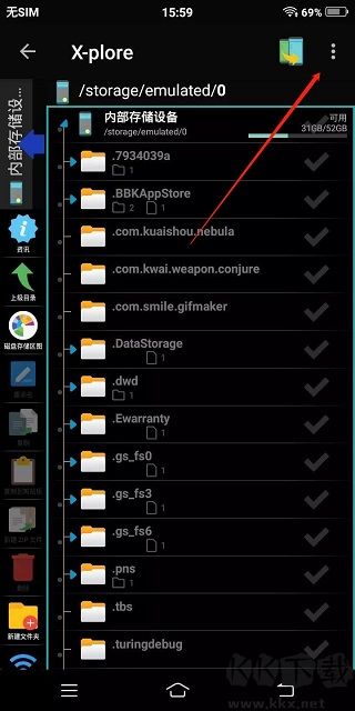 1、打开Xplore文件管理器,点击右上角三个点,