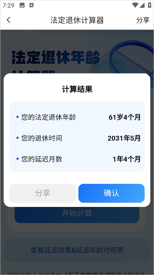 3、最后计算退休结果如下