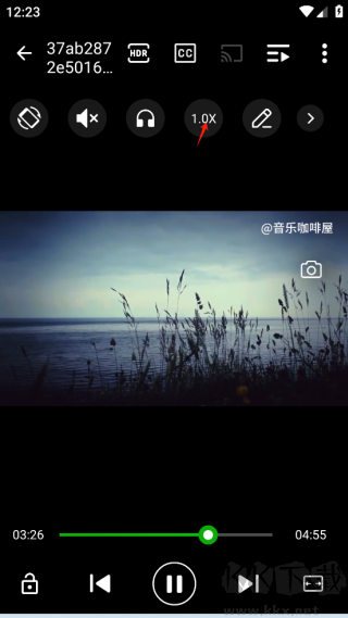 2、点一下正在播放的页面,可以看到上端有显示1.0x