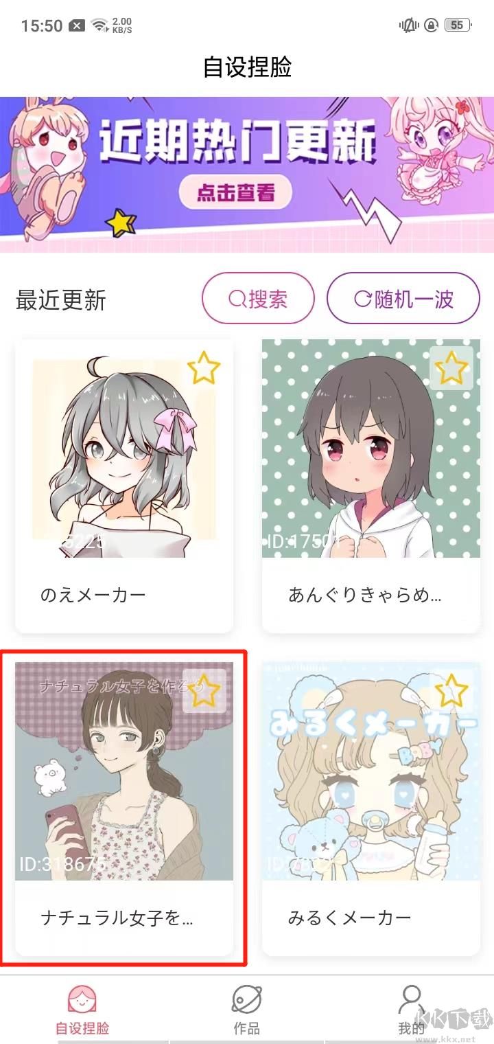 2、自设捏脸的作品栏目包含两个部分