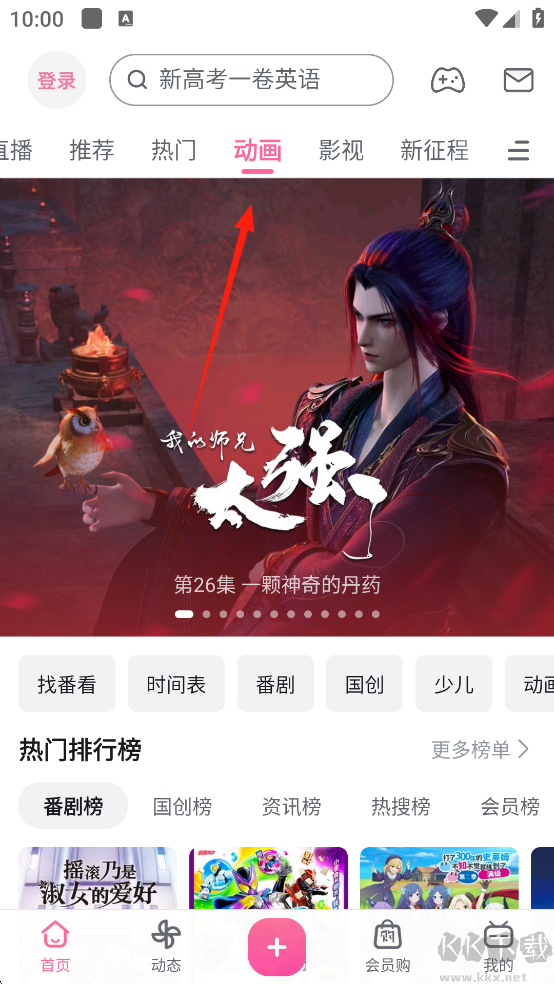 1、打开哔哩哔哩动画App,在首页中点击动画界面,并选择你要观看的动画