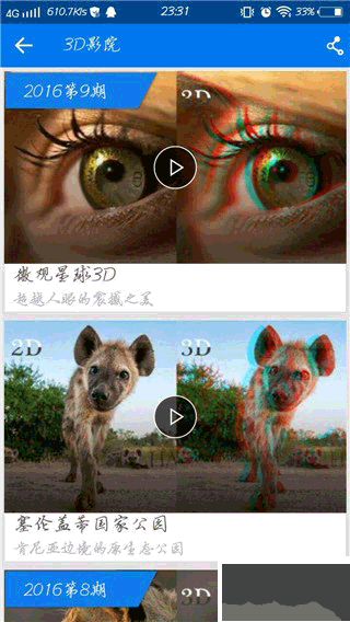 3、频道里面暴风影音手机版每周都会为用户推荐一些3D小视频电影,随便点开一部观看,等暴风加载完后就会自动的切换开启3D模式进行播放,非常的方便。