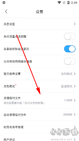 3、接下来在设置页面中,我们在页面上找到“自动清理临时文件”选项,点击该选项就可以清理临时文件了。