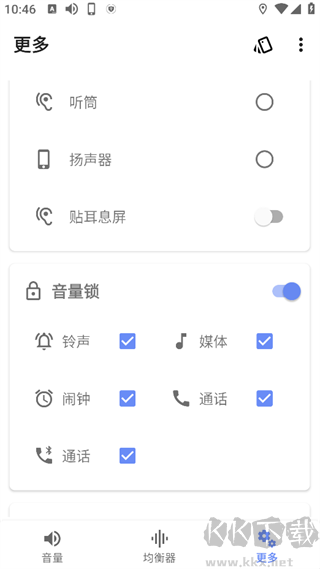 开启后,您可以选择具体的输出源(如听筒或扬声器)并使用音量锁功能,锁定铃声、媒体等不同类型的音量,避免意外调整,让您的音量设置更加稳定。
