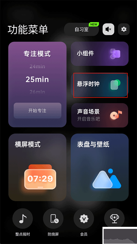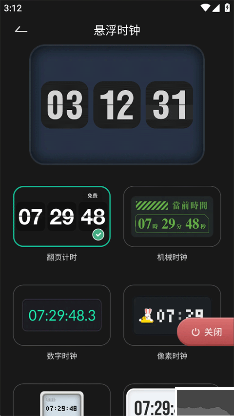 2、在悬浮时钟页面选择一款喜欢的时钟组件点击即可在屏幕上显示;