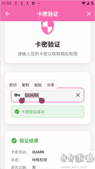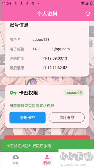1、用户注册登录app后会免费获得夸克网盘的卡密兑换码