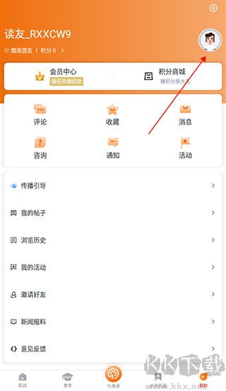 2、进入我的主页界面,我们点击右上角的【头像图标】