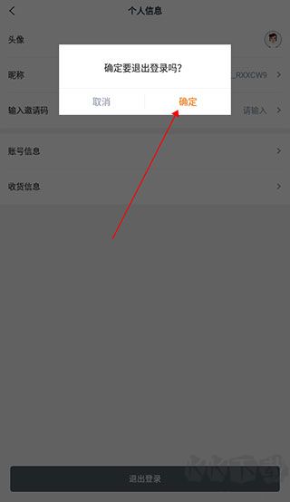 4、中间弹窗出现确定要退出登录吗提示,最后点击【确定】