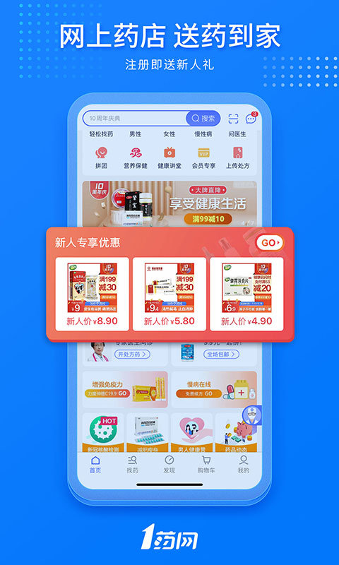 1药网,专业的网上购药平台,与药房网、康爱多、平安好医生、微医、叮当快药、春雨医生、爱康国宾、丁香医生、医指通、健康160快方送药、趣医院等APP一道建立良好的患者就医、购药、用药体验!