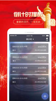 倒计时可以帮你将重要的纪念日日子进行分类管理,并精确显示距离这些纪念日还有多久。它还可以为你提供近10年的重要节日纪念日,同时它也提供了多种提醒选项,并重复提醒你。有了倒计时,你将不会再错过那些重要的纪念日、节日!