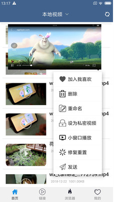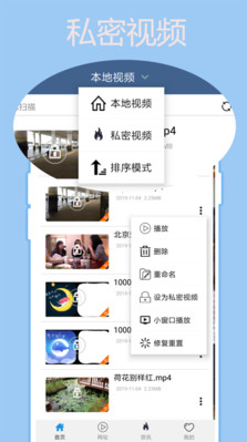1、启动时首页自动加载小视频文件,带缩略图,点击直接可以播放
