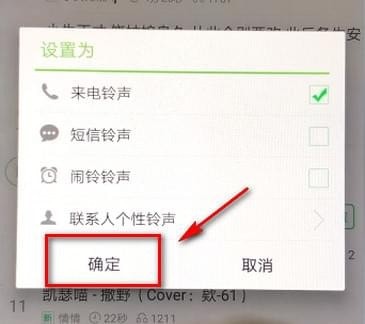 5.选择设置来电铃声,点击确定,就成功的设置铃声啦