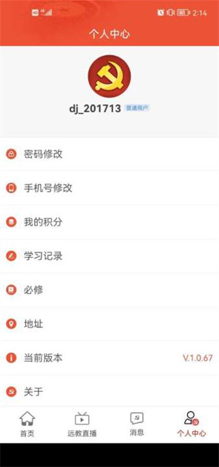 5、最后在我们板块中用户可以进行密码的修改,还可以查看自己的学习记录和积分。