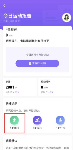 3、点击“开始跑步”选项,在快捷运动中点击“开始跑步”选项。