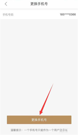 4、跳转页面后,点击底部的“更换手机号”按钮;