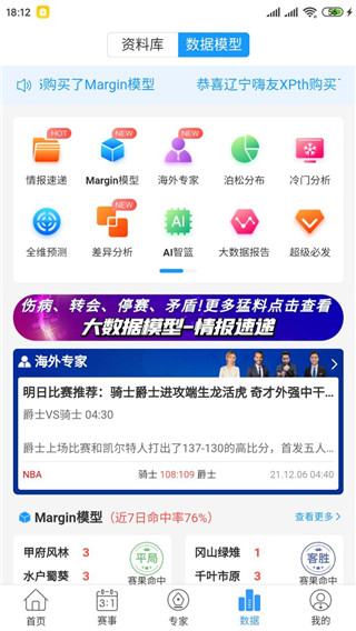 大数据汇报、小众剖析、全维预测分析、Ai智篮等11种数据实体模型服务项目,遮盖足球队、篮球赛等多个流行赛事,依据整体实力、情况、必发买卖、起伏行情等多维度的数据,根据大数据展开分析得出有效的判断几率,与此同时让消费者更好地了解比赛,帮助大家精确的开展管理决策。