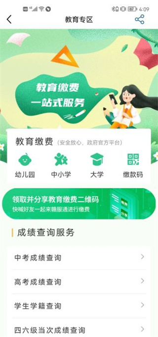 3.教育服务 赣服通app官方版提供了江西省内的各个学校、培训机构的信息,通过查询学校招生信息、培训班课程及费用等,全方位地协助用户寻找最适合的教育资源。