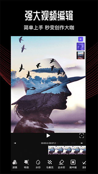 快剪视频编辑app是一款功能强大、操作简单的视频编辑工具。它的特点是提供了许多种不同的剪辑方式,包括剪切、拼接、增加特效等,使得用户可以轻松地制作出各种精美的视频!